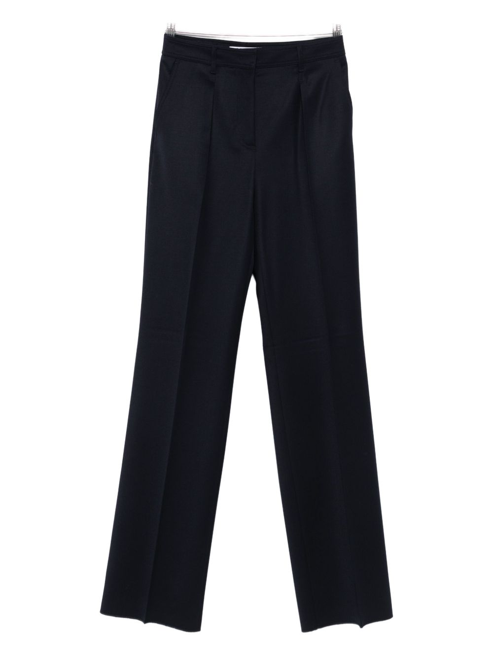Elevate your professional wardrobe with these impeccably tailored wool trousers from Max Mara. Crafted from premium wool, these sophisticated pants feature a pressed crease for a polished finish, belt loops for versatile styling, and a concealed front fastening for a sleek, streamlined silhouette.
