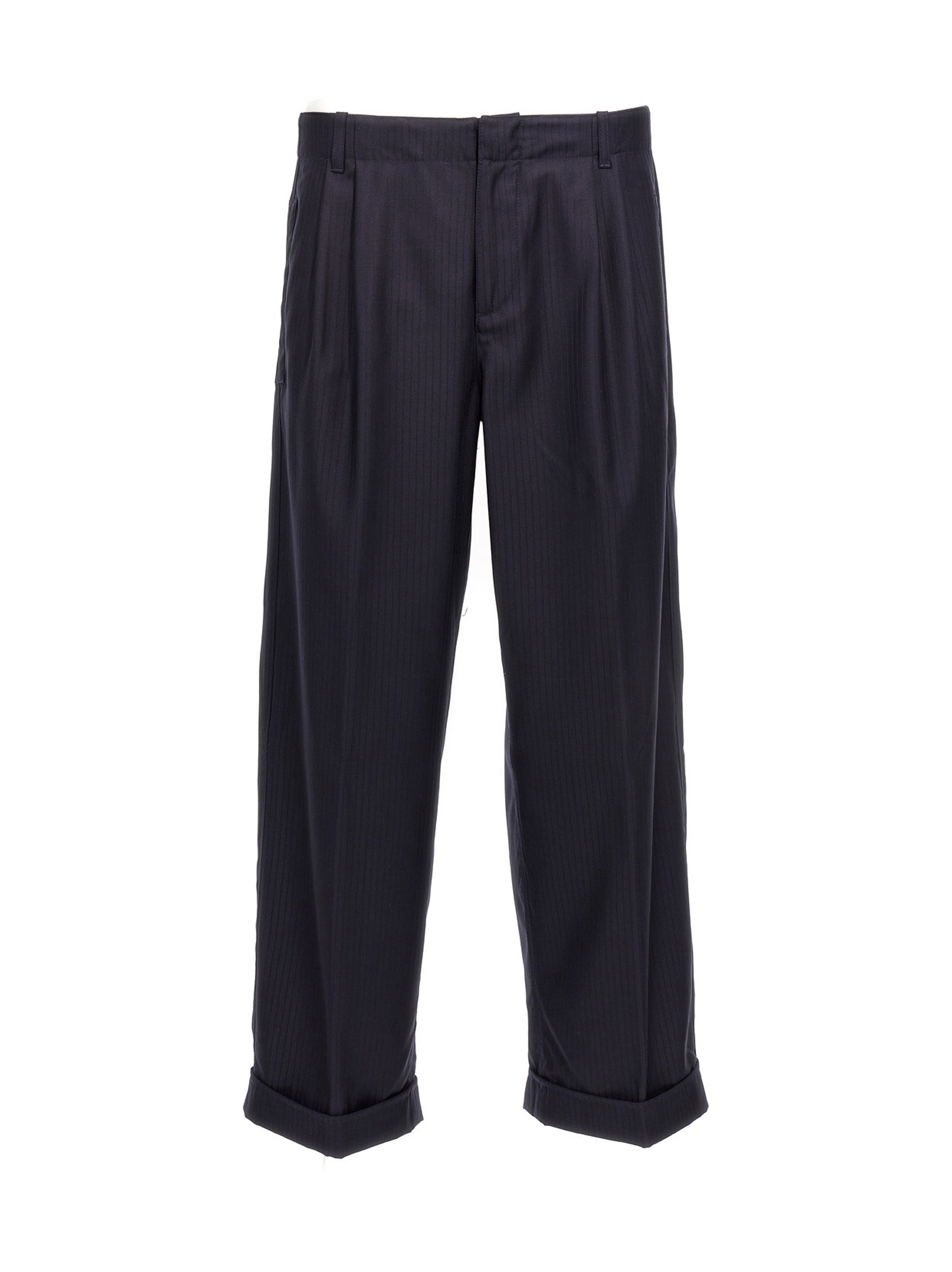 Elevate your workwear wardrobe with these sophisticated Worker' pants from Etro. Crafted in a refined tone-on-tone striped fabric, these pants feature classic front pleats that create a flattering silhouette and add dimension to your look.