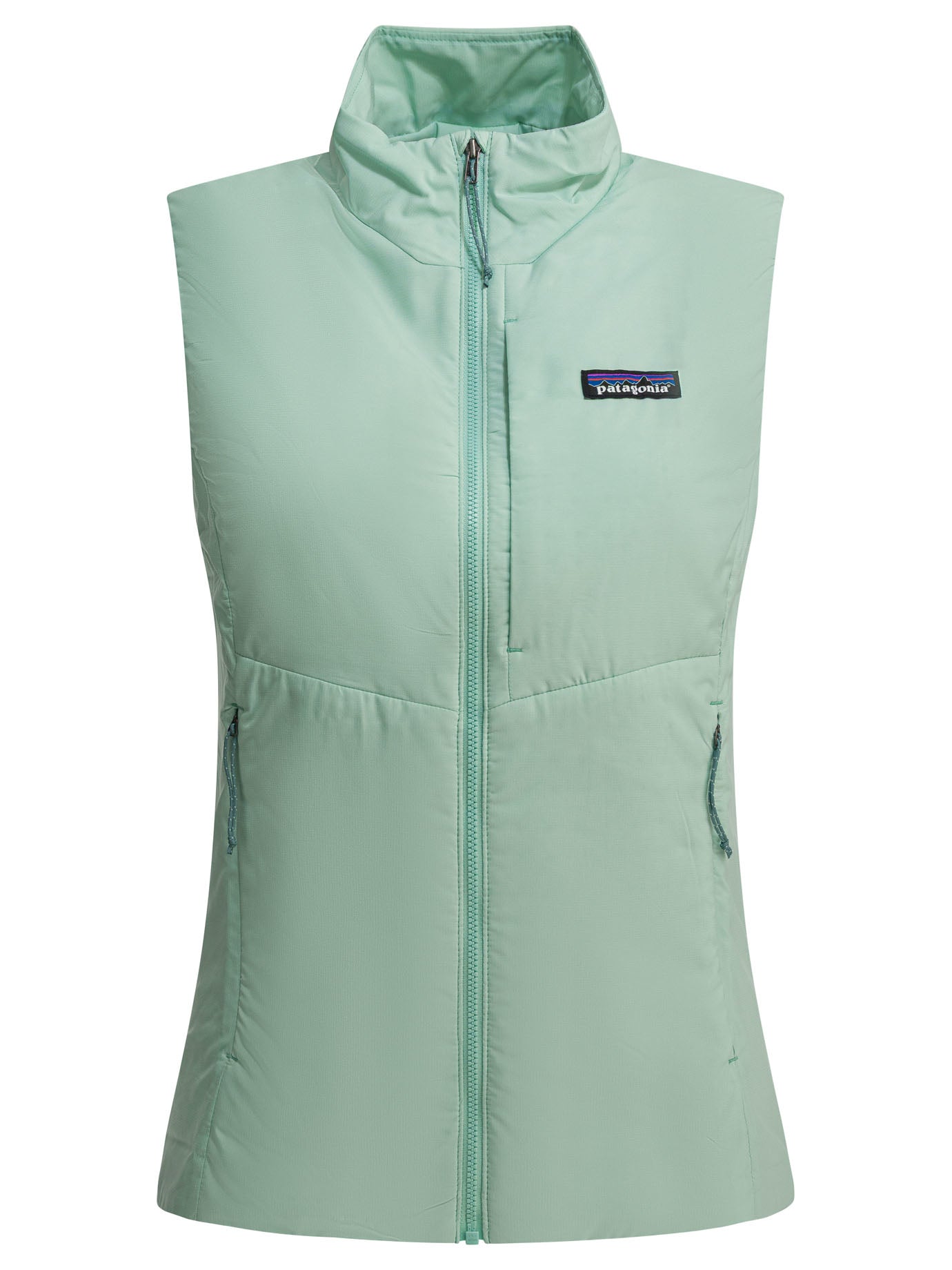 Patagonia's "W'S Nano-Air Light" sleeveless jacket made of recycled polyester ripstop fabric for the outside and lining, featuring lightweight and flexible construction. Recycled polyester FullRange™ padding supports 59 m³/h air permeability, aiding heat dispersion during activity. Low-profile quilted fabrication and fitted silhouette detailed with center-front zipper, essential trim armholes and hem. Low-profile pockets complement functionality.