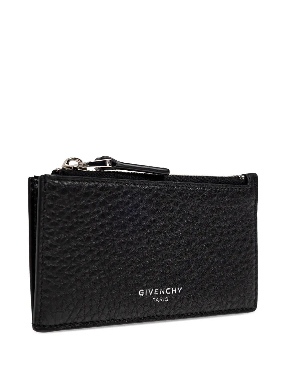 Elevate your everyday essentials with this sophisticated Givenchy zipped card holder, crafted from luxuriously textured black leather. This sleek accessory features a secure zip-top closure to keep your cards and cash organized and protected.