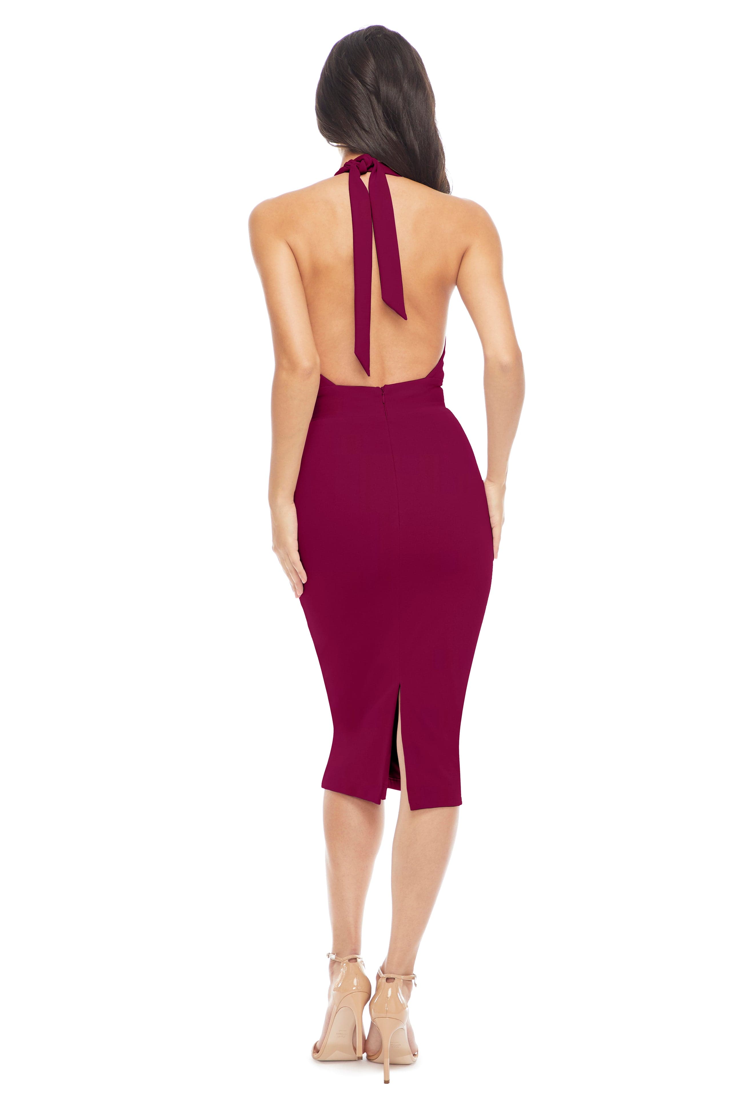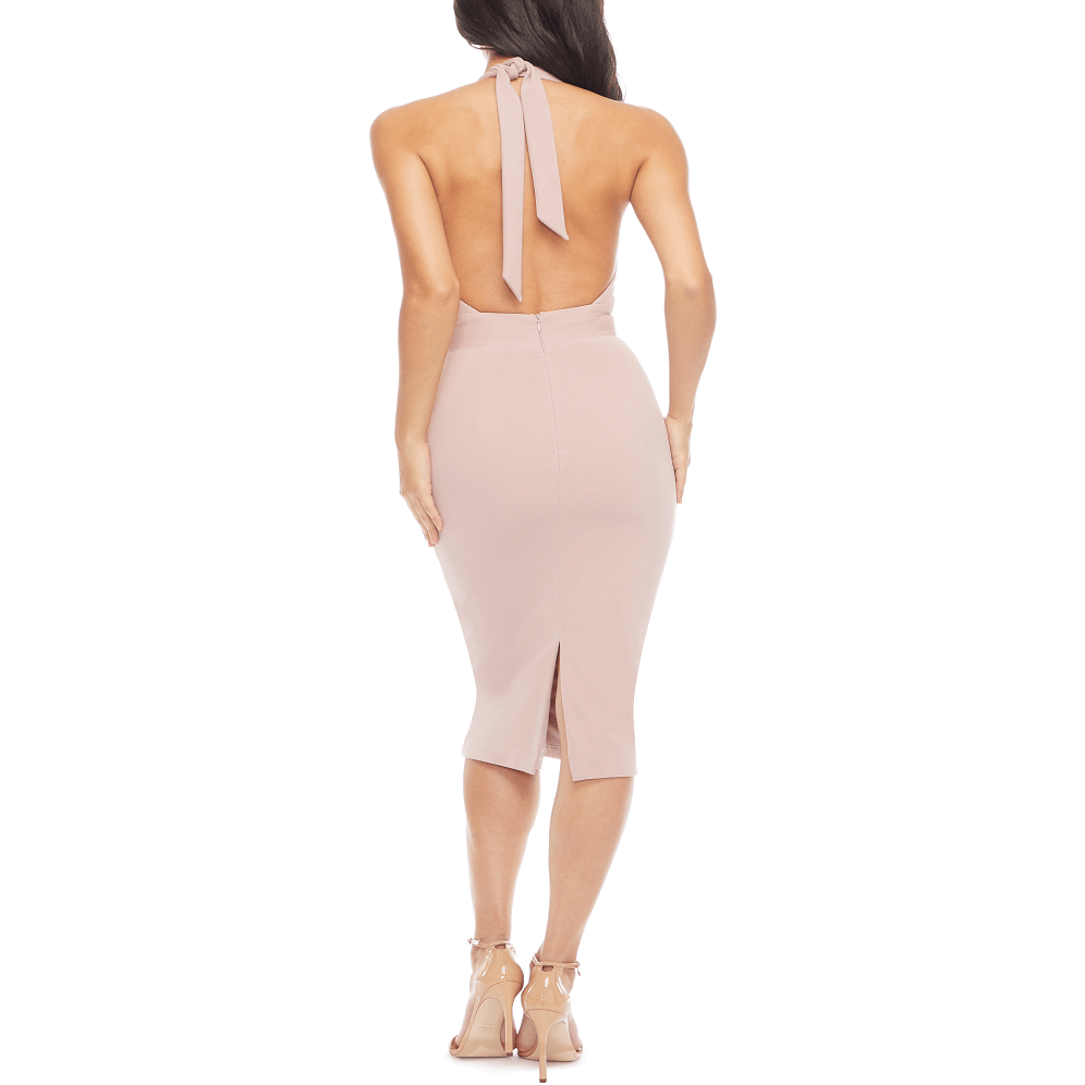 This sultry yet sophisticated dress will be your new favorite for nights out. Vanessa hugs your curves and features a plunging halter neck and flirt back slit.